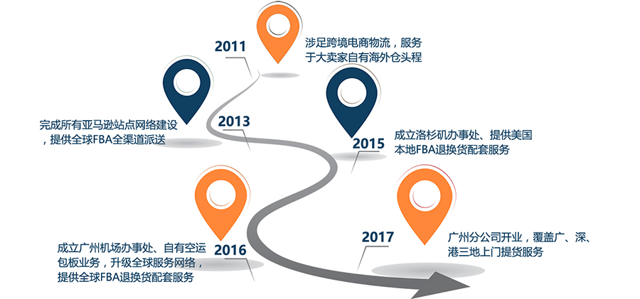 公司总部在深圳、广州设有分公司、香港、及欧美设有办事处。自主开发物流ERP,持续不断加大信息化和科技投入。拥有遍布全球的强大清关代理网络,自建多条极具优势的国际专线产品,自主开发“微信查价平台”即:用FBA仓库代码即可查询门到门物流费用的微信平台,以客户需求为导向,以创新创造为核心。