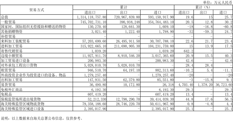 (3)2017年6月进出口商品贸易方式总值表(累计)(人民币值)