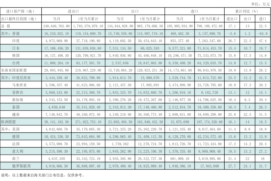 您当前的位置: 首页 > 进出口资讯 > 进出口数据 > (4)2017年8月进出口商品主要国别(地区)总值表(人民币)