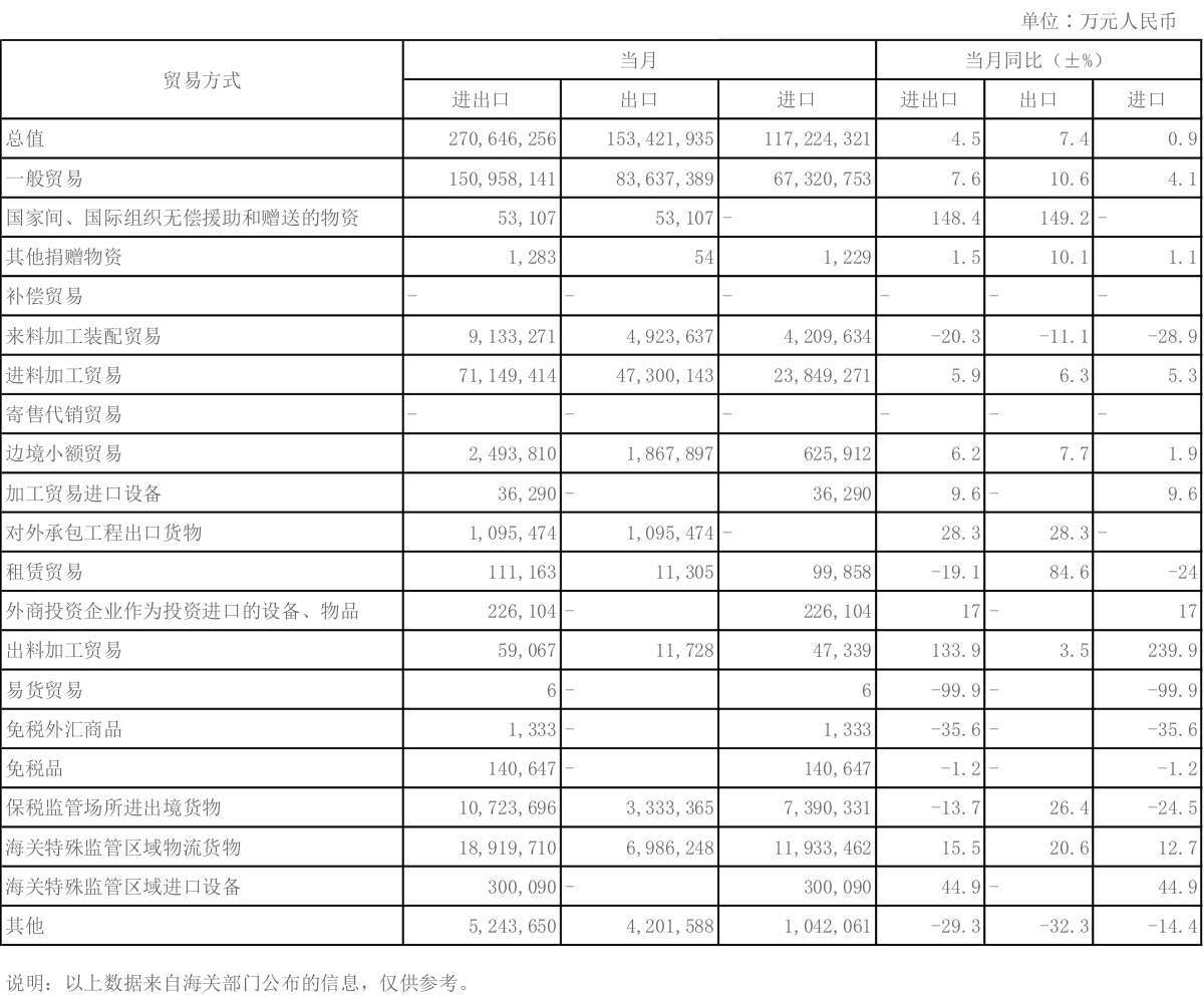 (2)2017年12月进出口商品贸易方式总值表(当月)(人民币值)