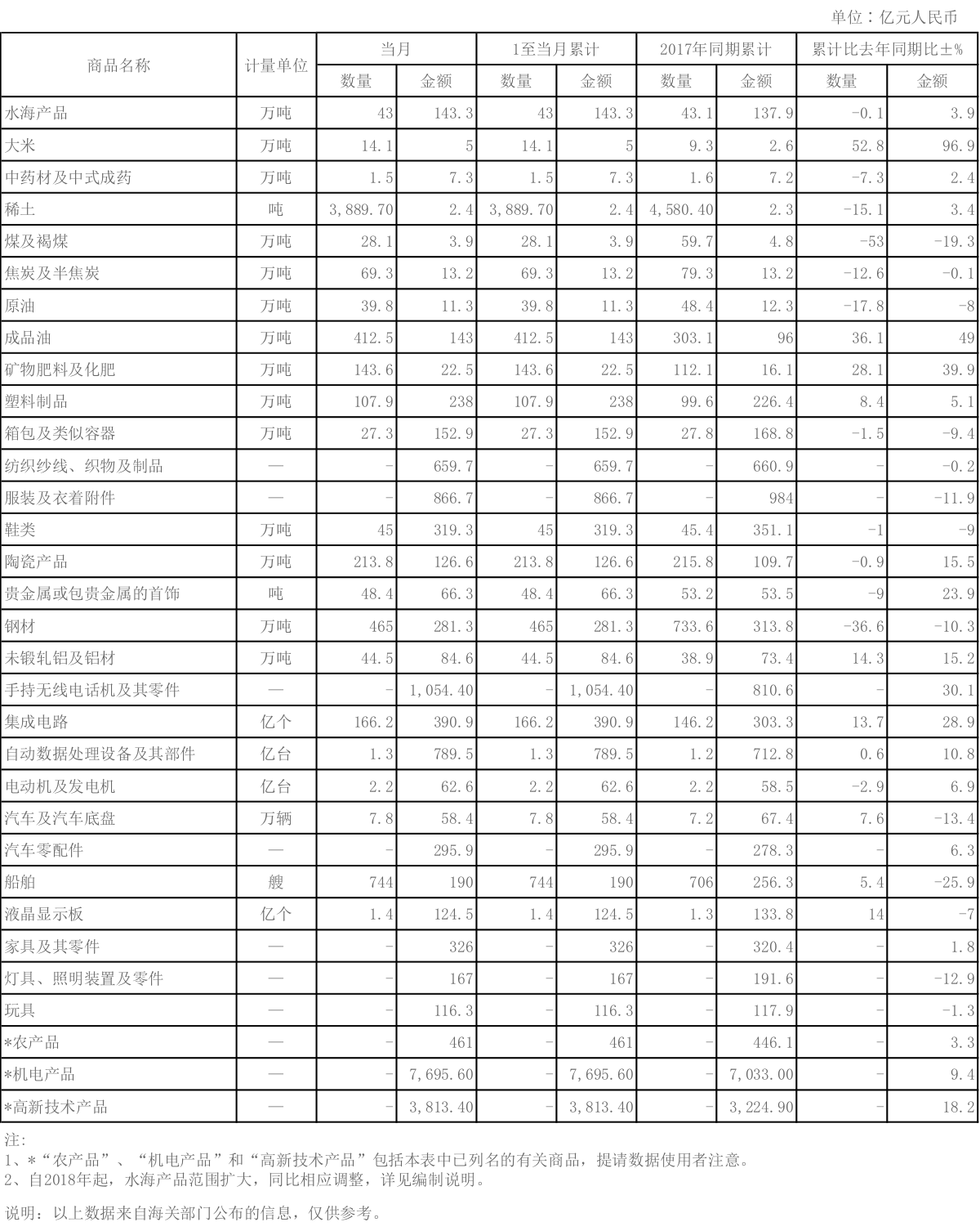 您当前的位置: 首页 > 进出口资讯 > 进出口数据 > (5)2018年1月全国出口重点商品量值表(人民币值)