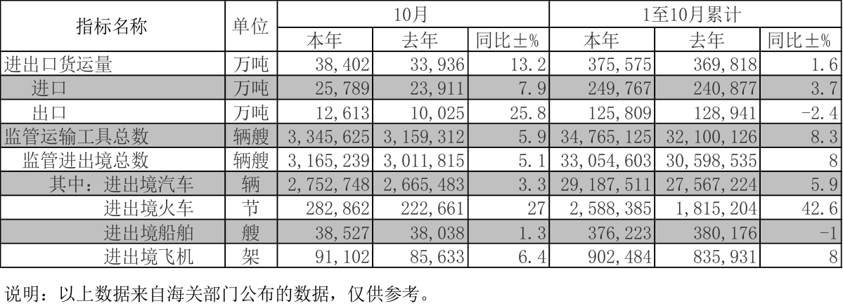 2019-11-08 浏览量(939) 来源:海关总署