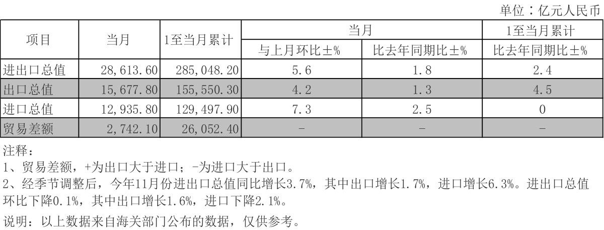 您当前的位置: 首页 > 进出口资讯 > 进出口数据 > (1)2019年11月全国进出口总值表(人民币值)