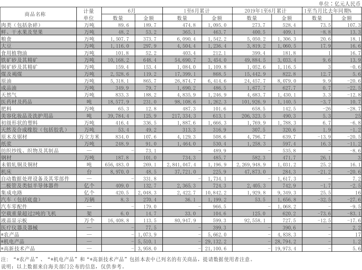 (5)2020年6月全国进口重点商品量值表(人民币值)