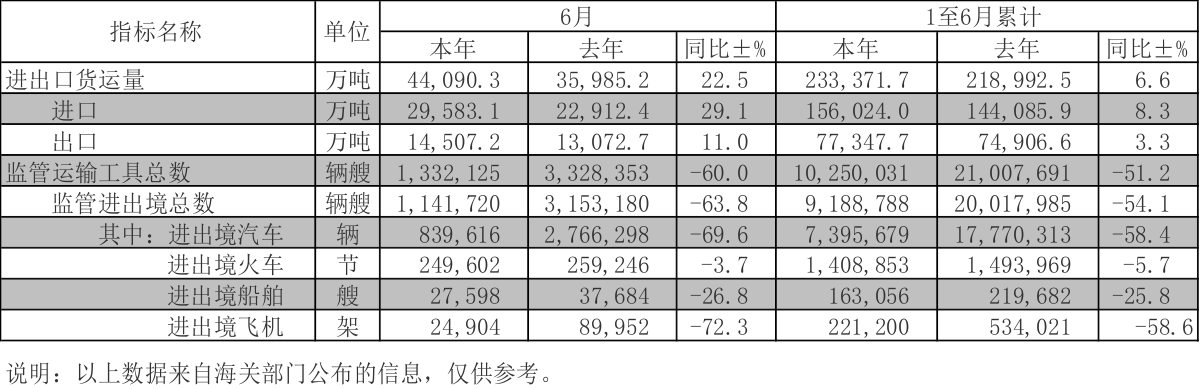 您当前的位置: 首页 > 进出口资讯 > 进出口数据 > (7)2020年6月货运监管业务统计快报表