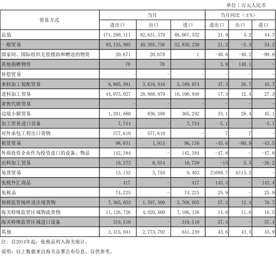 (2)2017年2月进出口商品贸易方式总值表(当月)(人民币值)
