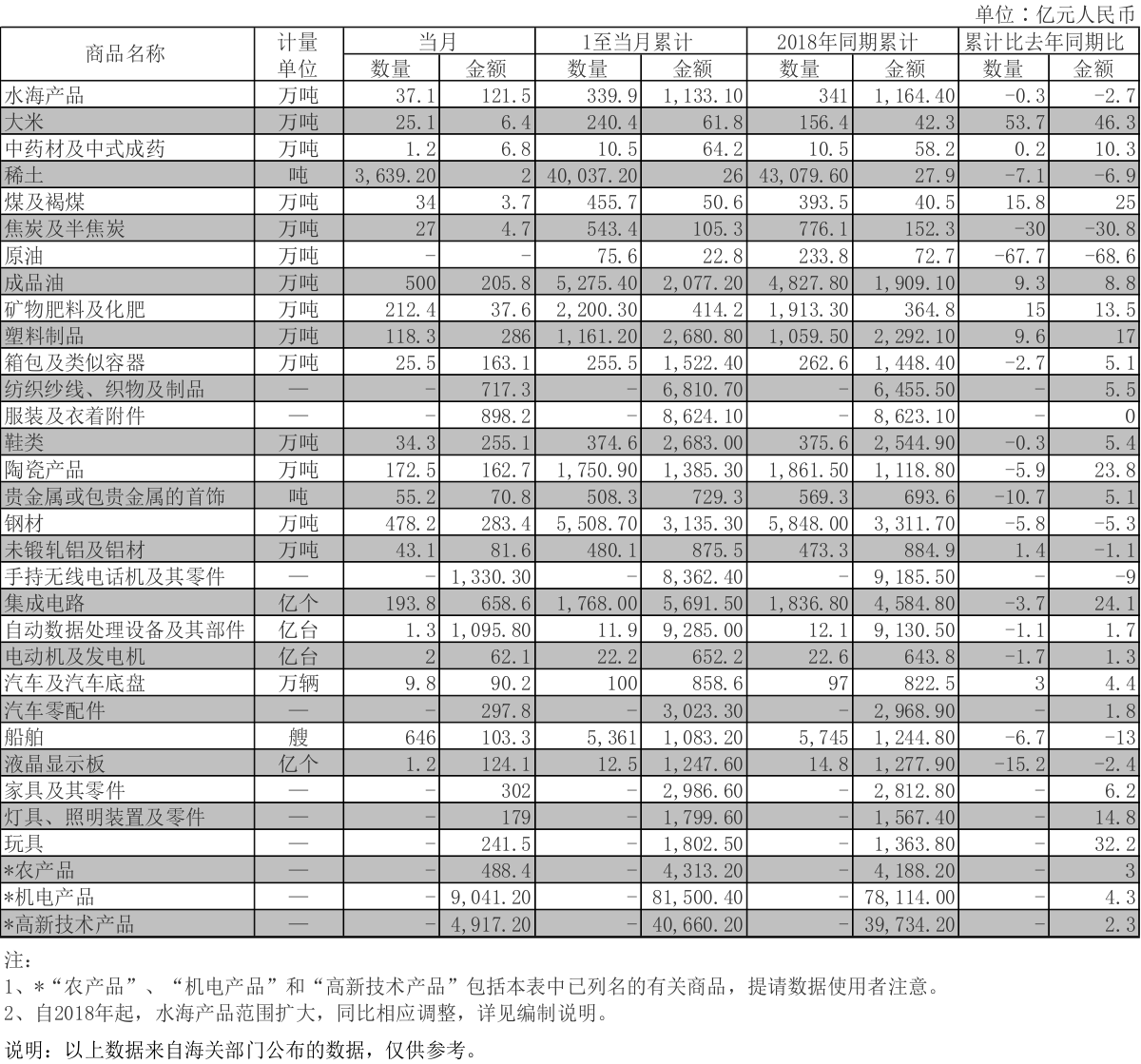 您当前的位置: 首页 > 进出口资讯 > 进出口数据 > (5)2019年10月全国出口重点商品量值表(人民币值)
