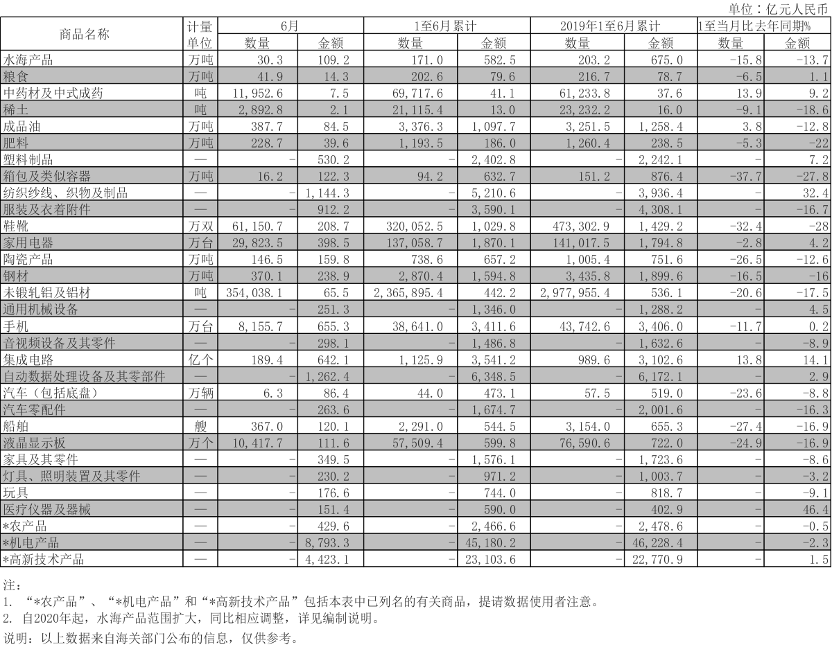 您当前的位置: 首页 > 进出口资讯 > 进出口数据 > (4)2020年6月全国出口重点商品量值表(人民币值)